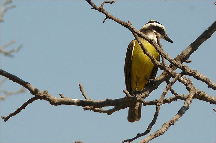 Este pájaro cuya imagen también tomamos aquà en San Pedro vive en todos los paÃses de América excepto en Canadá. Lo apodan de diversos nombres porque dicen que cuando canta pronuncia su nombre: bichofeo, benteveo, bienteveo, cristofué, pitogüé y otros muchos.
